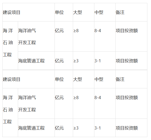 注:海洋石油工程大中型項(xiàng)目劃分標(biāo)準(zhǔn)對(duì)照表